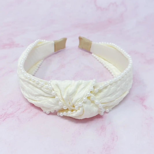 Off White Knotted Headband with Pearls