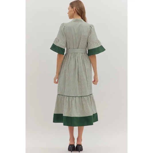 Green Striped Short Puff Sleeve Midi DressRegular price $86.95 USDRegular priceUnit price per-