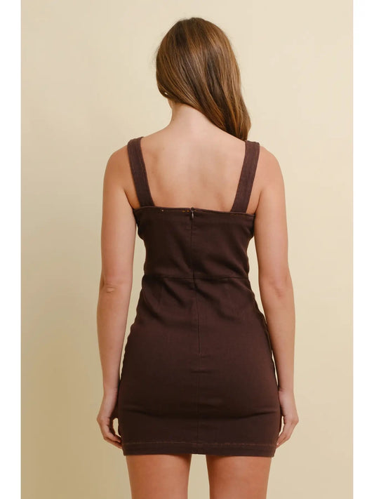 Embroidered Brown Denim Mini Dress