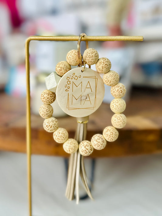 Wooden Bead Leopard Mama Keychain Wristlet