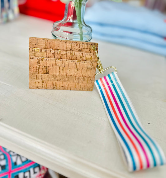 Cork Wallet with Striped Wristlet
