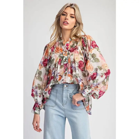 Berry Round Neck Bubble Sleeve Crop Sweater