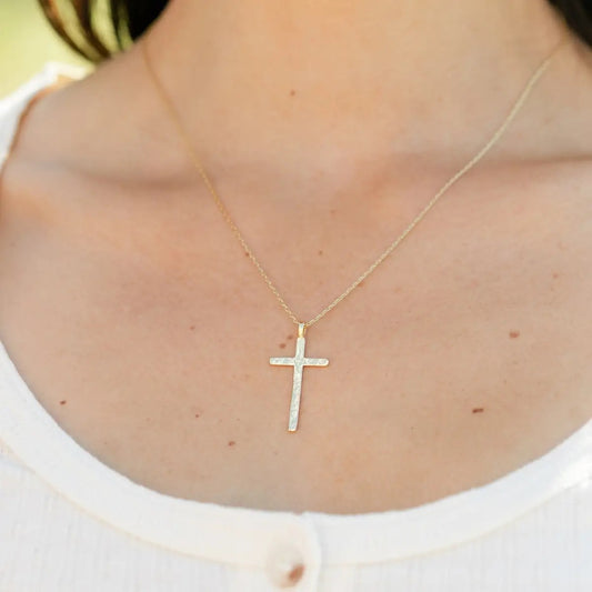 Splendid Iris Cross Etched Shell Pendant Necklace