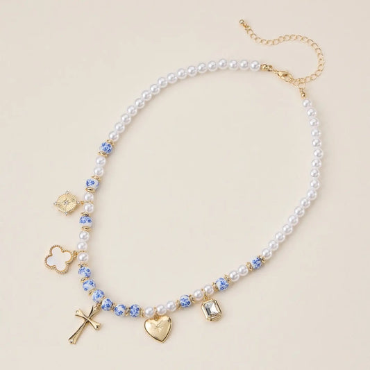 Gold Dipped Charm Necklace with Cross, Clover, Wishbone