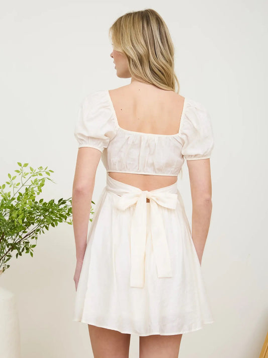 Mint Corset Detail Back Tie Puff Sleeve Mini Dress