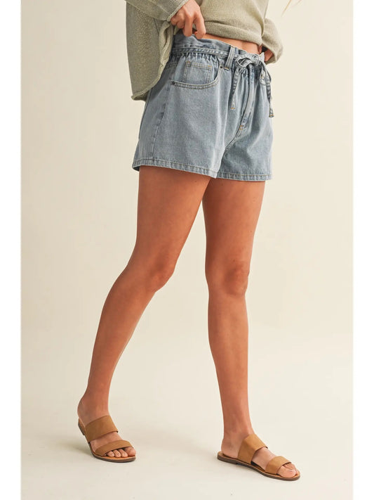 Paperbag Denim Shorts with Tie Waist