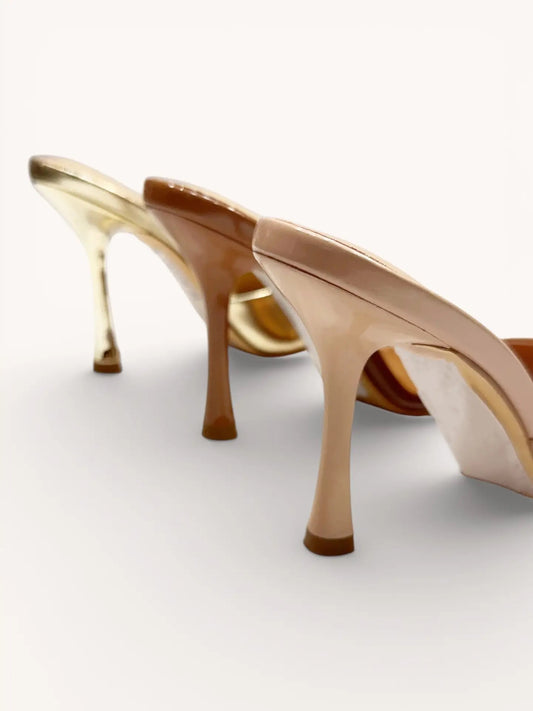 Open Peep Toe Flare Stiletto-Ivory