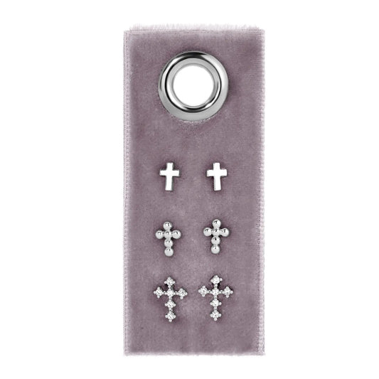 Splendid Iris Velvet Cross 3 Stud Earring Sets