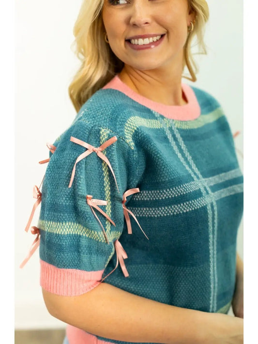 Plaid Sweater w/ Puff Ribbon Sleeve