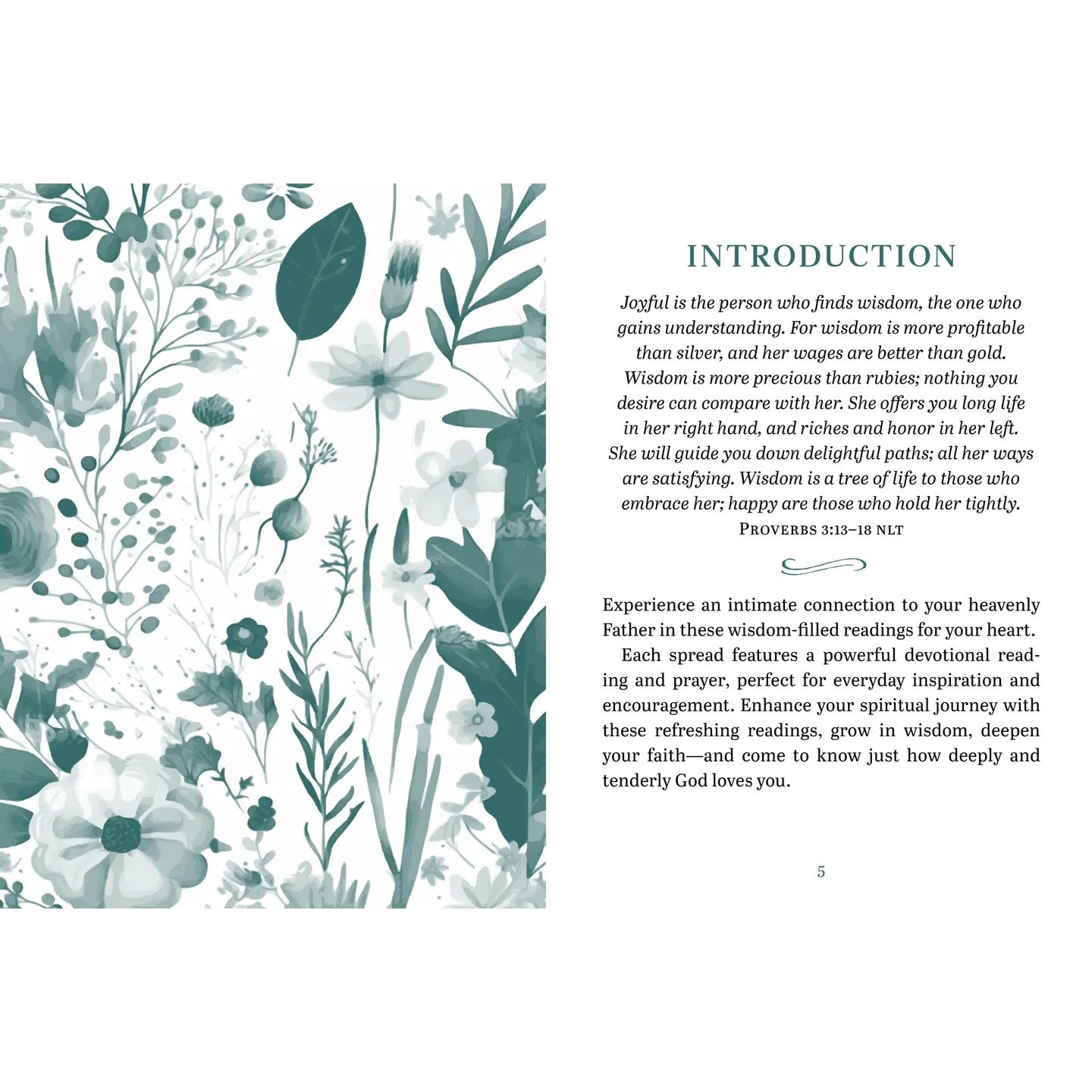 Discover True Wisdom Found in God's Word This large print devotional collection is designed to draw you closer to your heavenly Father’s heart. Featuring 90 inspiring readings combined with scripture and powerful prayers, this lovely book will provide both encouragement and Bible wisdom, as you come to know just how deeply and tenderly God loves you. Here you'll find your faith journey enhanced and strengthened as you experience an intimate connection with the Master Creator.