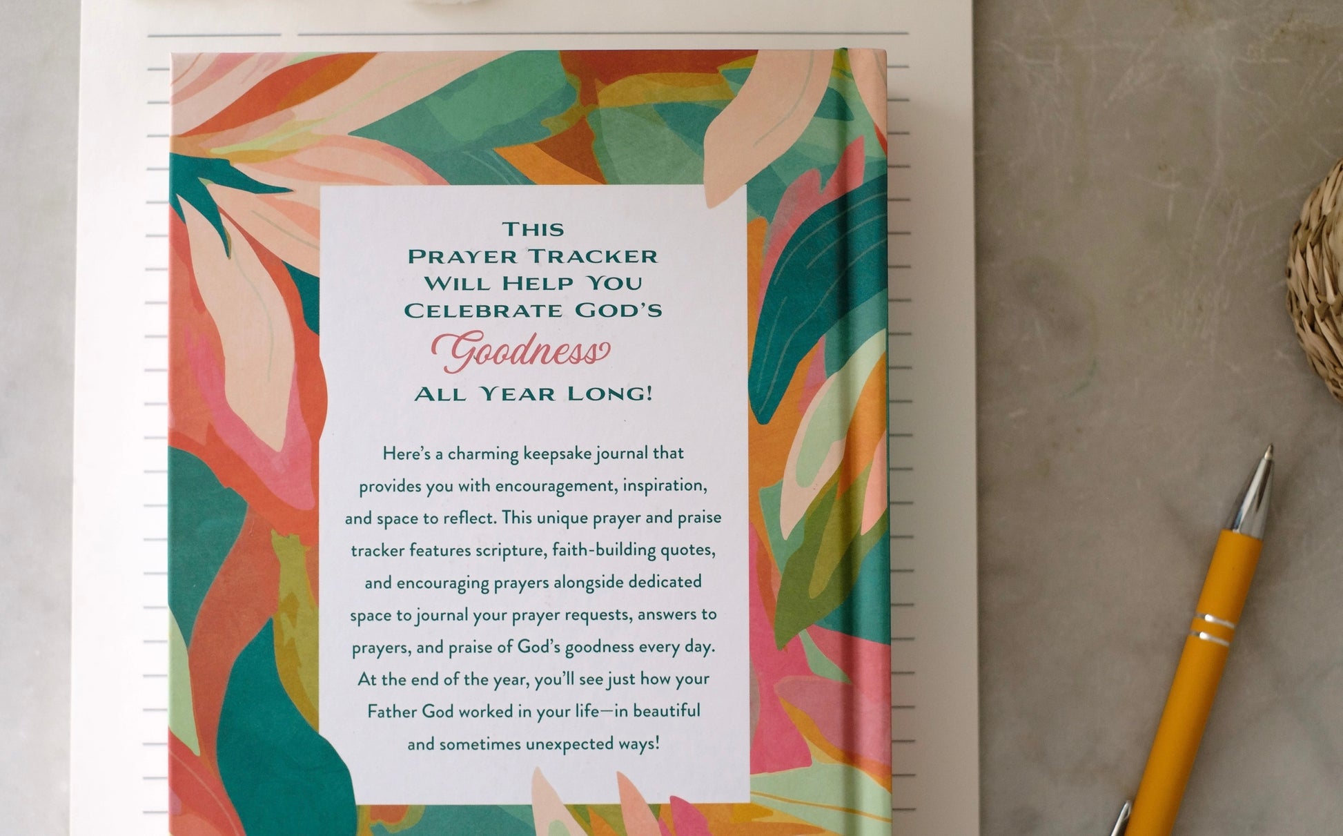This Practical and Encouraging Prayer Tracker Will Help You Celebrate God’s Goodness Here's a charming keepsake journal that provides you with encouragement, inspiration, and space to reflect. This unique prayer and praise tracker features scripture, faith-building quotes, and encouraging prayers alongside dedicated space to journal your prayer requests, answers to prayers, and praise of God's goodness every day. At the end of the year, you'll see just how your Father God worked in your life—in beautiful and sometimes unexpected ways