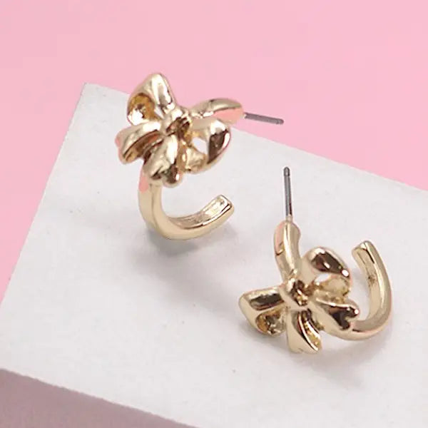 These charming earrings feature a delicate bow design that hugs your earlobes, offering a sophisticated yet playful style. Perfect for any occasion, they are crafted from high-quality materials to ensure durability and comfort.