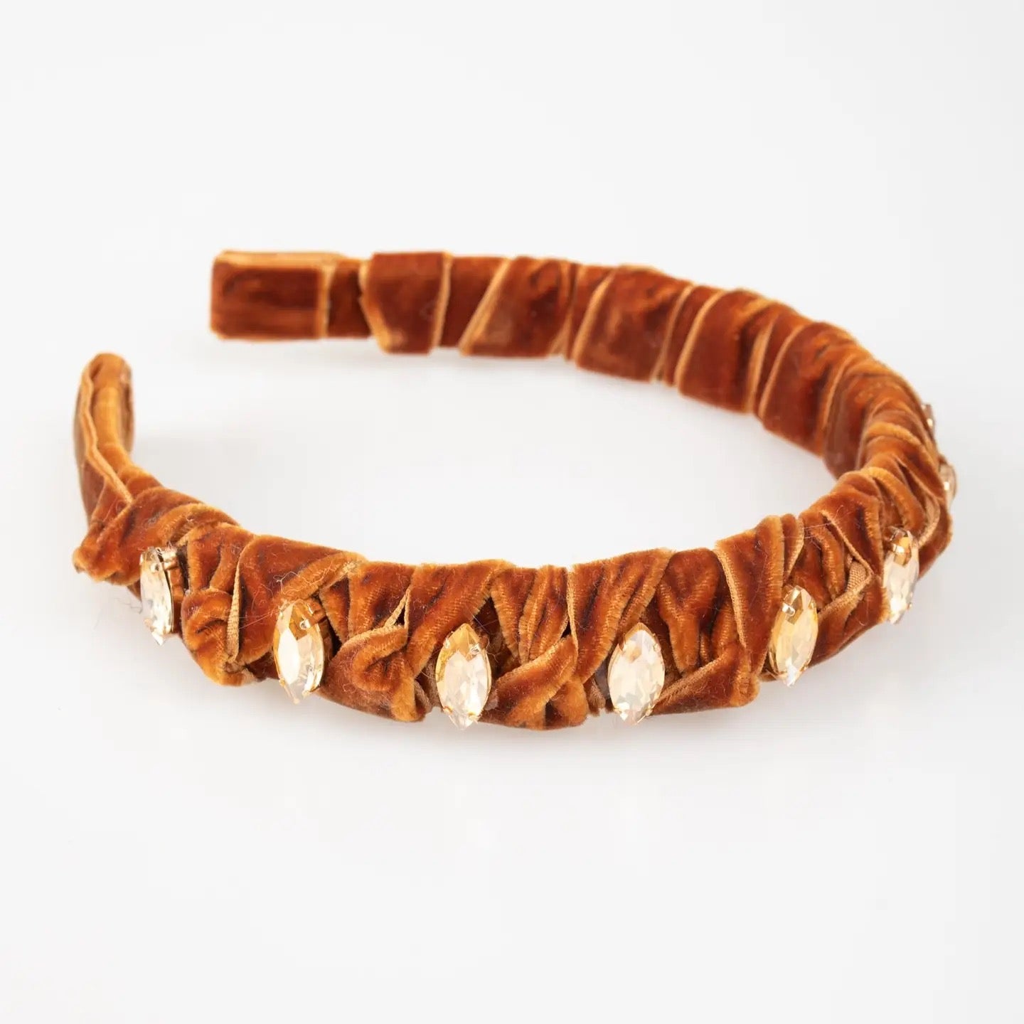An everyday crown fit for a princess! This fun headband is wrapped in lush velvet and dotted with crystals for an elevated style. * 2/3" wide * Velvet ribbon * Crystals