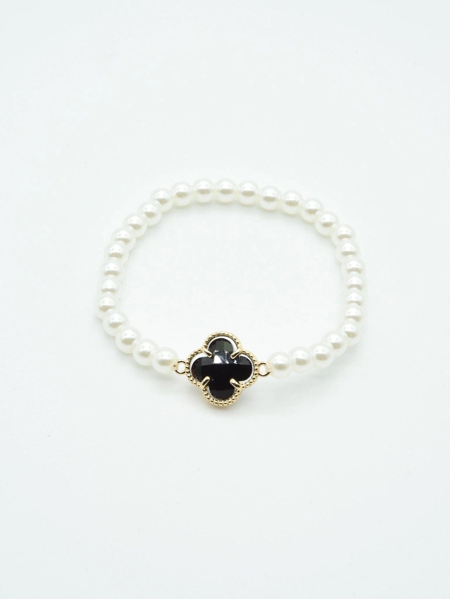Elevate your accessory collection with this refined Clover Accent Pearl Stretch Bracelet. Featuring lustrous pearls paired with a delicate clover charm, this piece delivers timeless elegance with contemporary ease. The durable stretch band ensures a secure, comfortable fit for all-day wear without compromising style. Whether layered with other bracelets or worn solo, this versatile design complements both casual and formal ensembles, making it an essential addition to any discerning jewelry wardrobe.