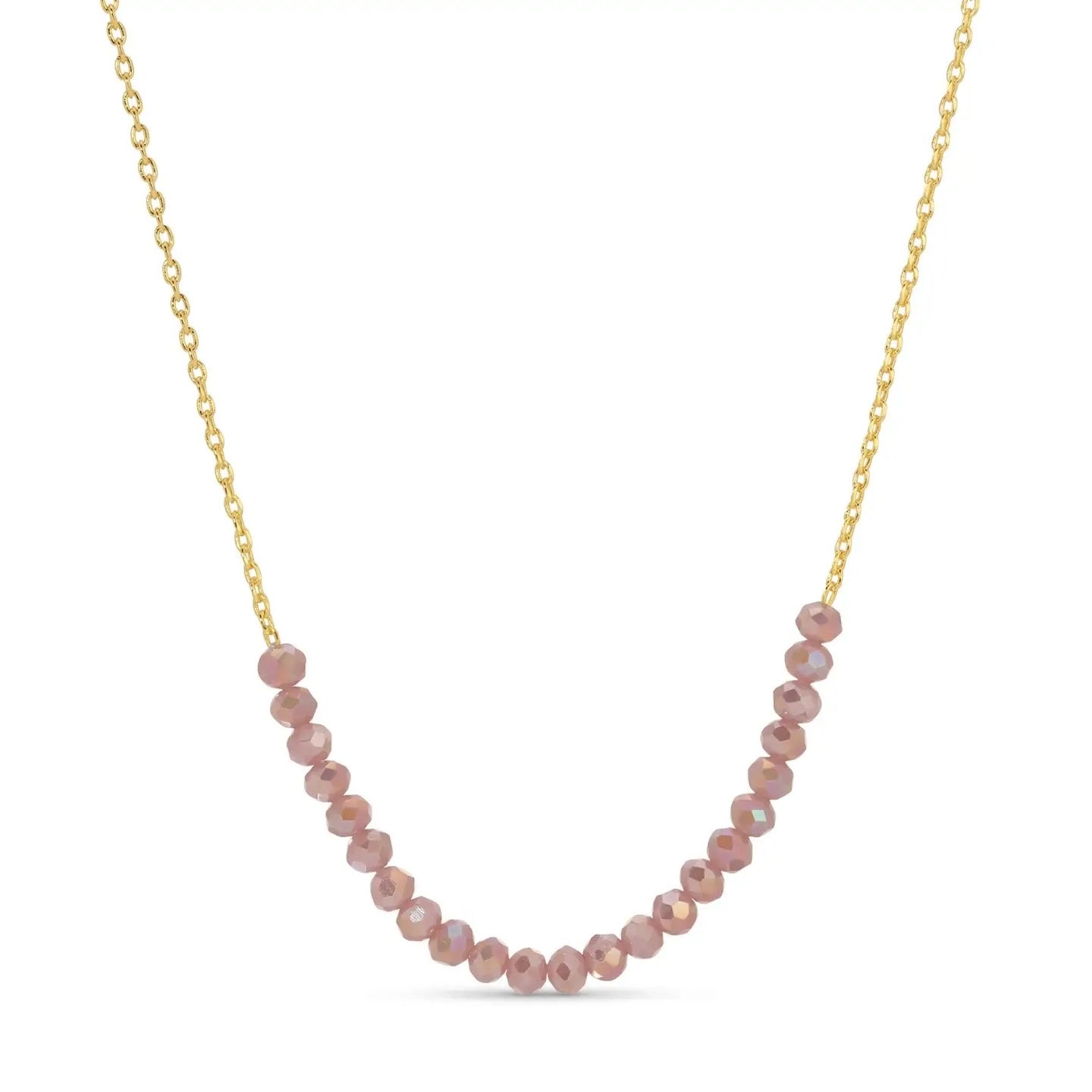 Elevate your everyday elegance with this refined 16" necklace, expertly crafted with a brass base and finished in luxurious 18k gold plating. Delicate glass crystals catch the light beautifully, adding sophisticated sparkle to any ensemble. The perfect length for layering or wearing solo, this piece combines timeless design with quality craftsmanship. Whether you're dressing up for a special occasion or enhancing your daily style, this necklace delivers understated glamour that complements any wardrobe.