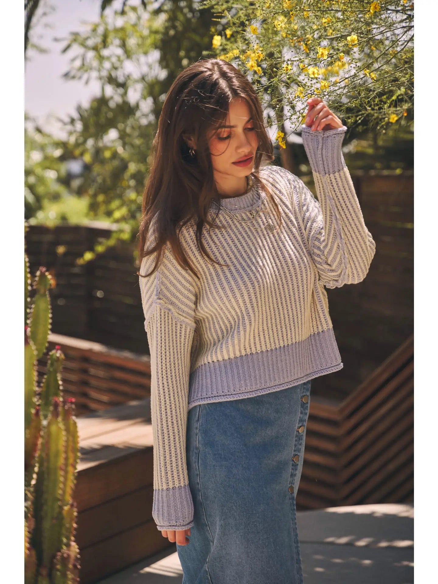 This Blue Crochet Striped Oversized Sweater combines a relaxed silhouette with refined detailing. Featuring a comfortable oversized fit and dropped shoulders, it ensures effortless layering and all-day comfort. The subtle two-tone stripes are enhanced by contrast bands at the neck, cuffs, and hem, adding a polished touch to the classic round neck design and long sleeves. Ideal for a sophisticated yet casual look, this sweater offers style and versatility for cooler days.