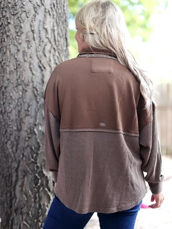 The Espresso Waffle Quarter Zip Pullover combines comfort and style with its unique waffle texture and espresso hue. Designed with a scoop hem and side slit, it offers a modern silhouette that enhances mobility. The JLB fit provides a slightly oversized shape, ensuring a relaxed yet polished look ideal for layering or casual wear. Perfect for those seeking a versatile pullover that balances cozy warmth with contemporary design.