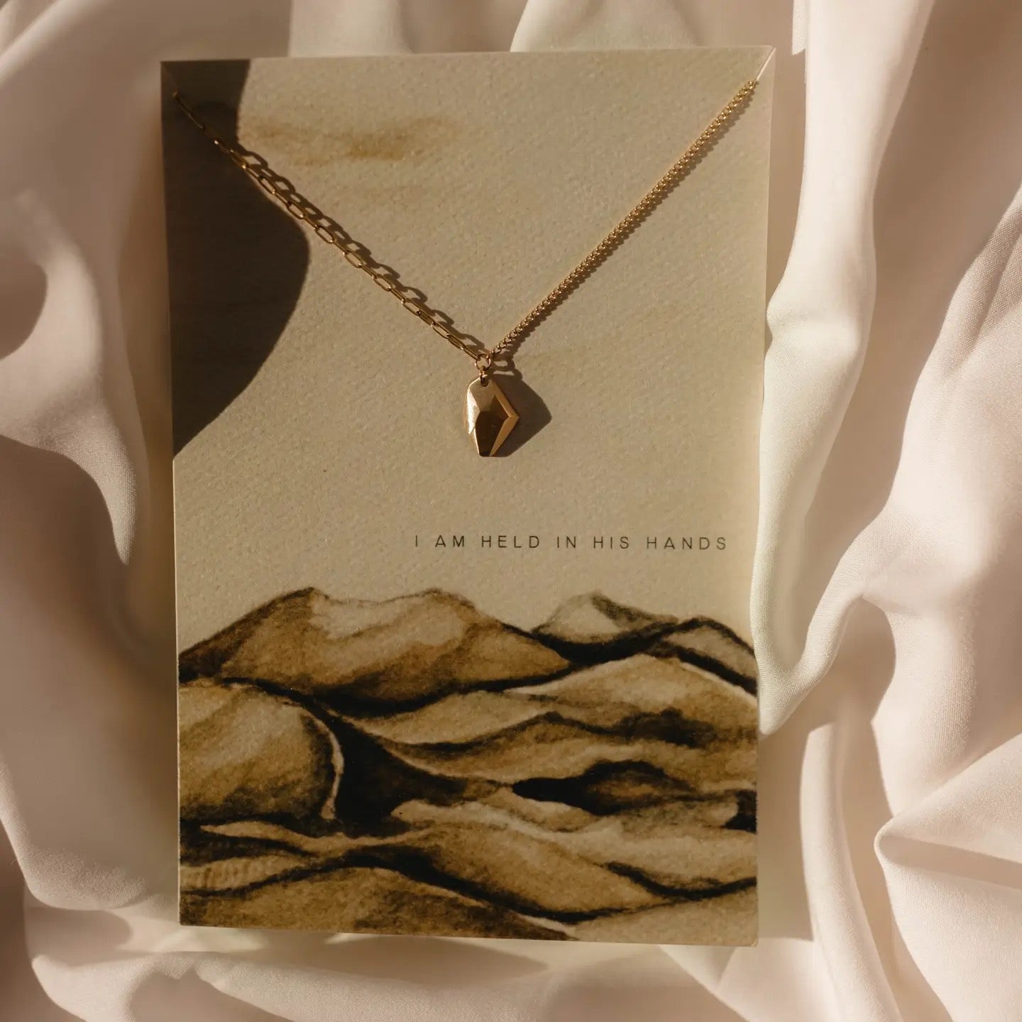 Details in the Design: It has two different chains on each side to represent "two paths" and then ending with a bold pendant representing God's Authority. 18" Adjustable Chain 14kt Gold over stainless steel Tarnish + Water Resistant Pendant measures about 1/2" tall.