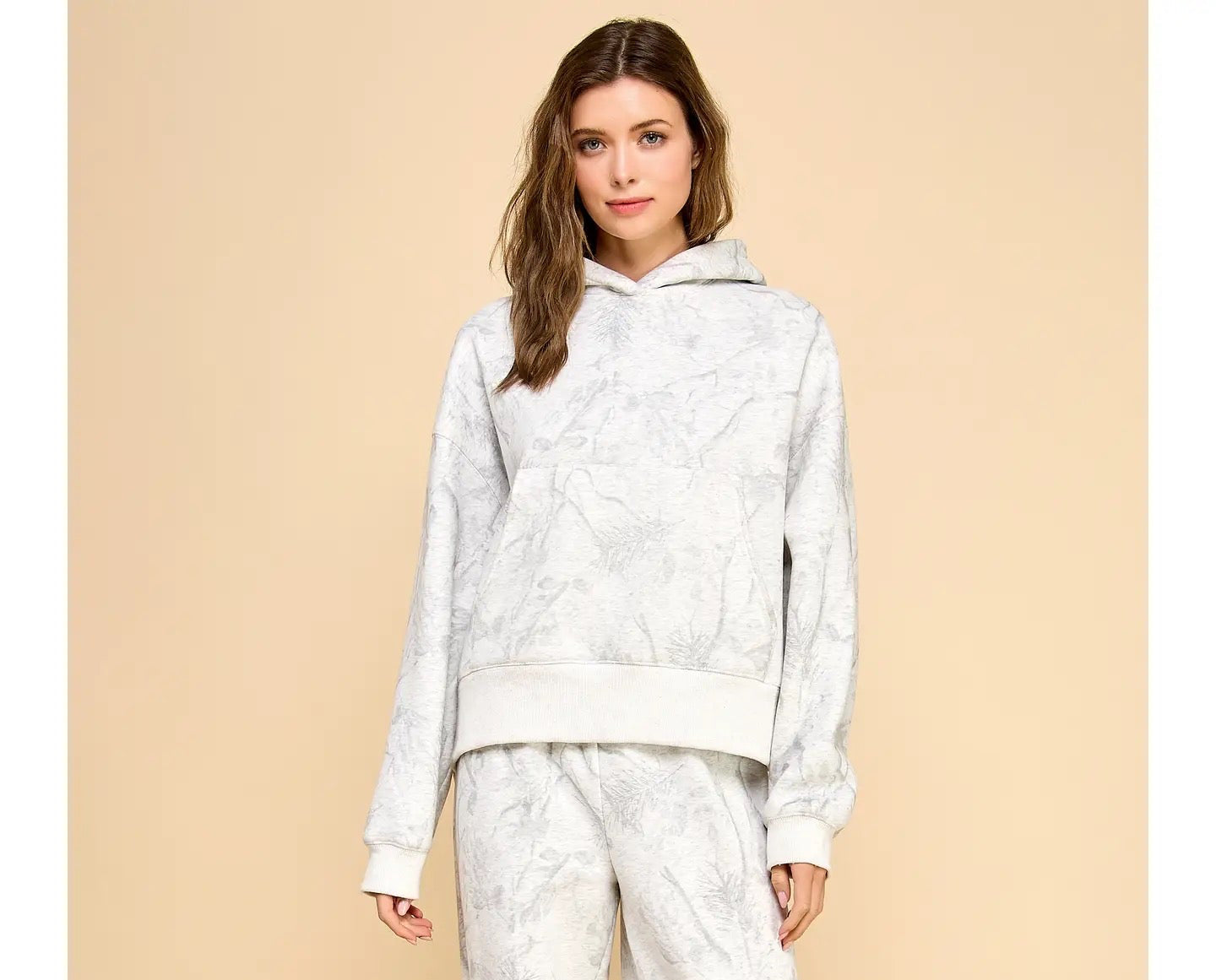 Experience comfort and style with the Grey Camo Loose Fit Hoodie, designed with a soft fabric and an elastic band for a flexible, secure fit. Its loose silhouette ensures ease of movement, while the front pocket adds practical storage for essentials. Ideal for casual wear, this hoodie combines functionality with a relaxed, modern look.
