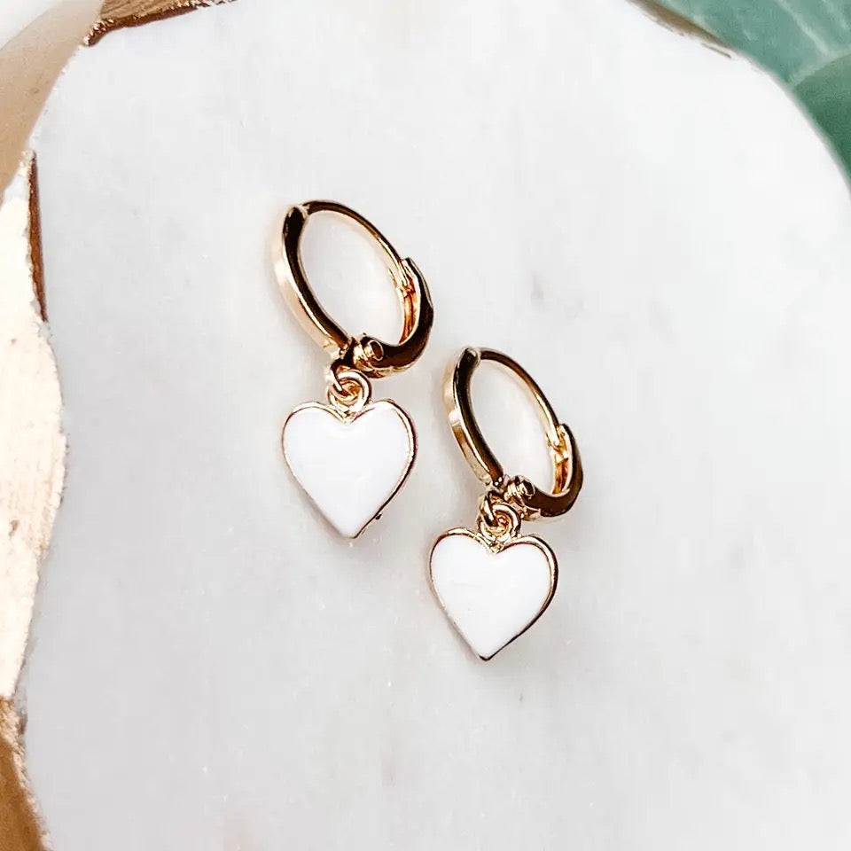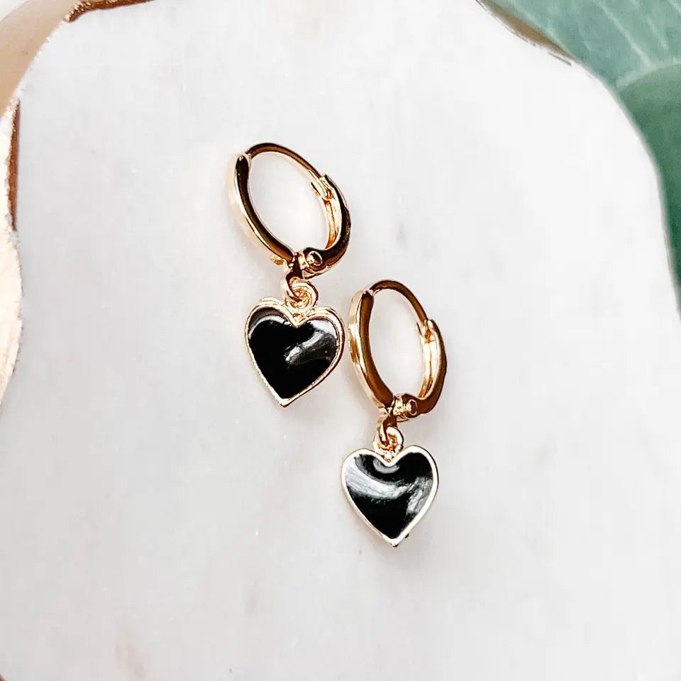 Heart dangle huggie earrings Gold-dipped brass Nickel and lead compliant