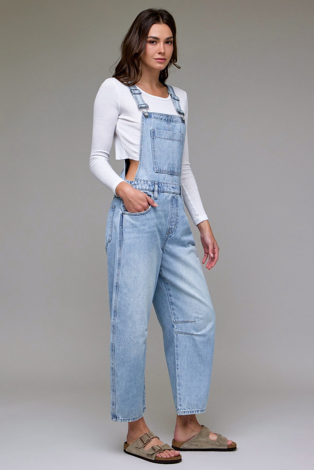Crafted from 100% cotton, the Hidden Light Wash Barrel Cropped Overall offers a breathable and durable fit designed for comfort and ease of movement. Its light wash finish provides a versatile, modern aesthetic that complements casual and stylish looks alike. The cropped barrel silhouette balances relaxed wearability with a contemporary edge, making it a practical yet fashion-forward addition to your wardrobe.