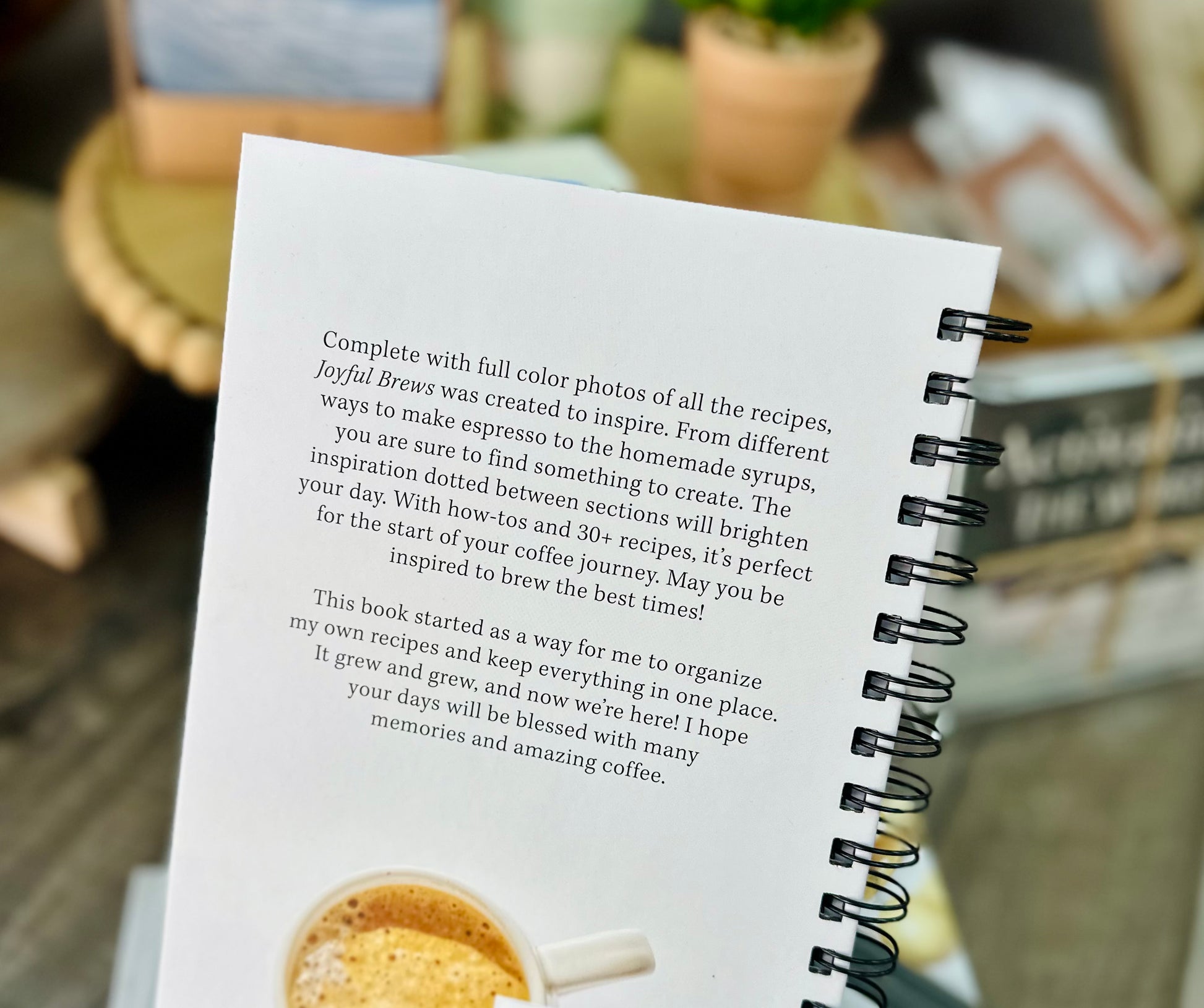 Complete with full color photos of all the recipes, Joyful Brews was created to inspire. From different ways to make espresso to the homemade syrups, you are sure to fi nd something to create. The inspiration dotted between sections will brighten your day. With methods, tools used and 35+ recipes, it’s perfect for the start of your coffee journey. May you be inspired to brew the best times!