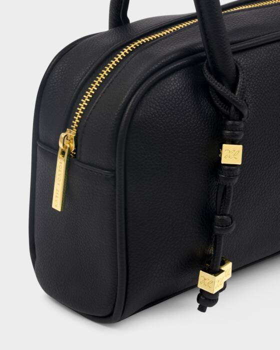 Inspired by the iconic noughties sportswear trend, our Hadley Bowling Bag in Black showcases a curved rectangular silhouette with rolled double handles and buckle detailing. Finished with a detachable bag charm and an internal zip pocket to keep valuables secure, it’s the perfect throwback style for modern-day dressing.