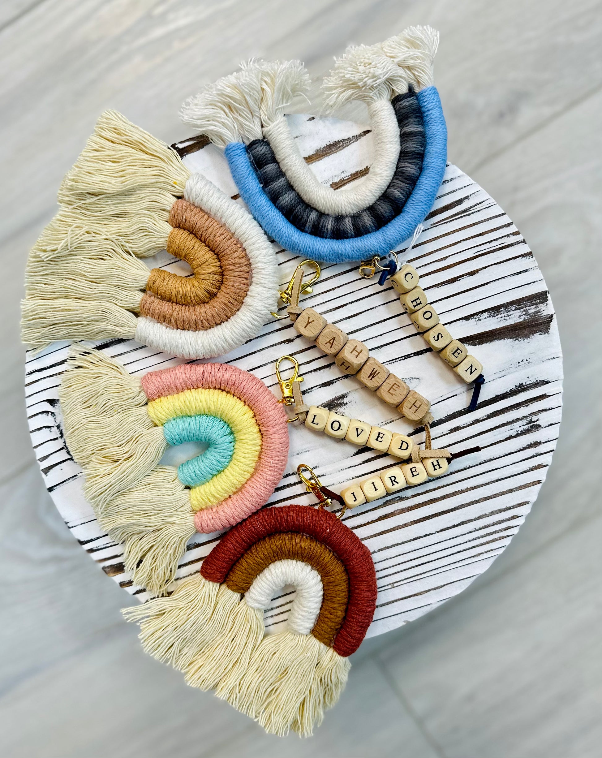 Treat your keys to a pop of color with this handmade Rainbow Keychain! The cheery and vivid colors will bring joy to your keyring, ensuring your day starts off on the right note. Perfect for a little pick-me-up or as a gift for someone special!