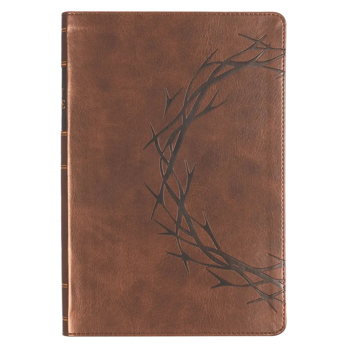 Let the powerful visual reminder of Christ's sacrifice draw you deeper into God's Word with the Brown Crown of Thorns Giant Print Full-size King James Version Bible with Thumb Index. This Bible, with its piercing design, will help you study, reflect, and grow in your faith.