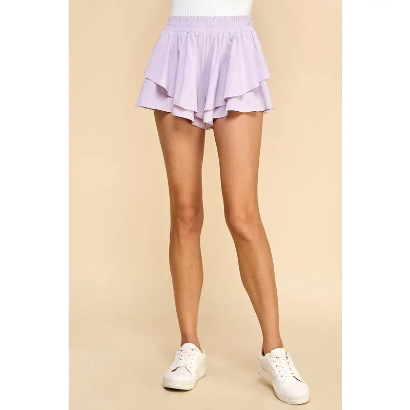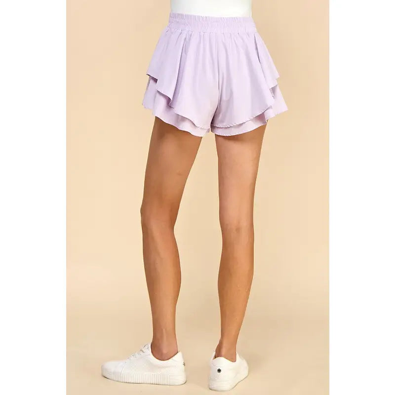 Crafted with a stylish tiered ruffle design, these Lavender Ruffle Shorts feature an elastic waistband for comfortable wear. Perfect for any occasion, these shorts combine fashion and functionality for a versatile addition to any wardrobe.
