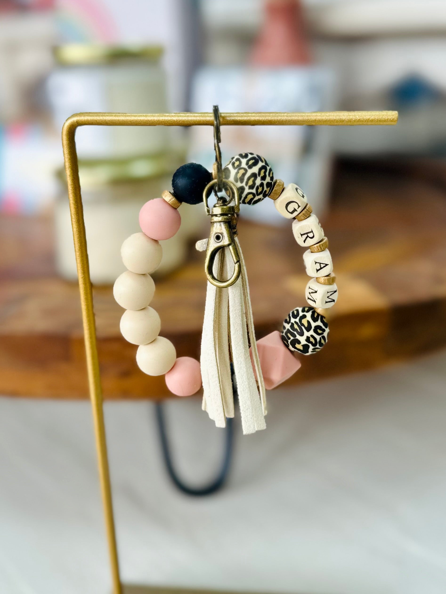 Leopard Keychain Wristlet (Mama, Nana, Mimi, Gigi, Gram)