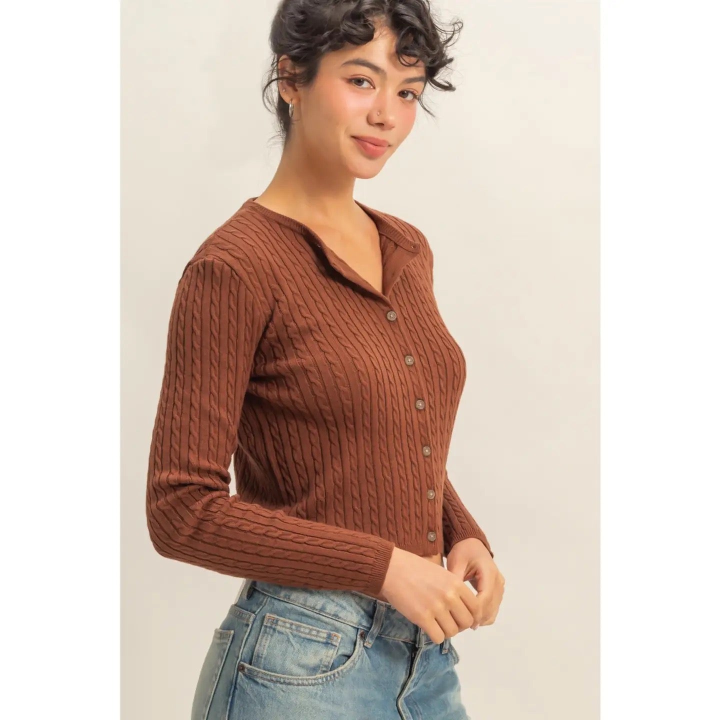 This Long Sleeve Cable Cardigan combines classic cable knit craftsmanship with a slim-fit silhouette for a polished look. Crafted from a soft blend of 55% cotton and 45% acrylic, it offers comfortable warmth and durability. Featuring long sleeves and a buttoned front, this versatile piece can be effortlessly styled for both casual and dressier occasions, ensuring you always appear poised and put together.