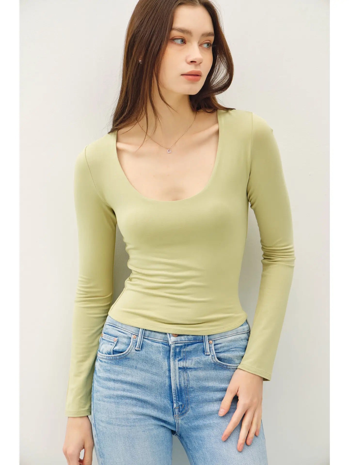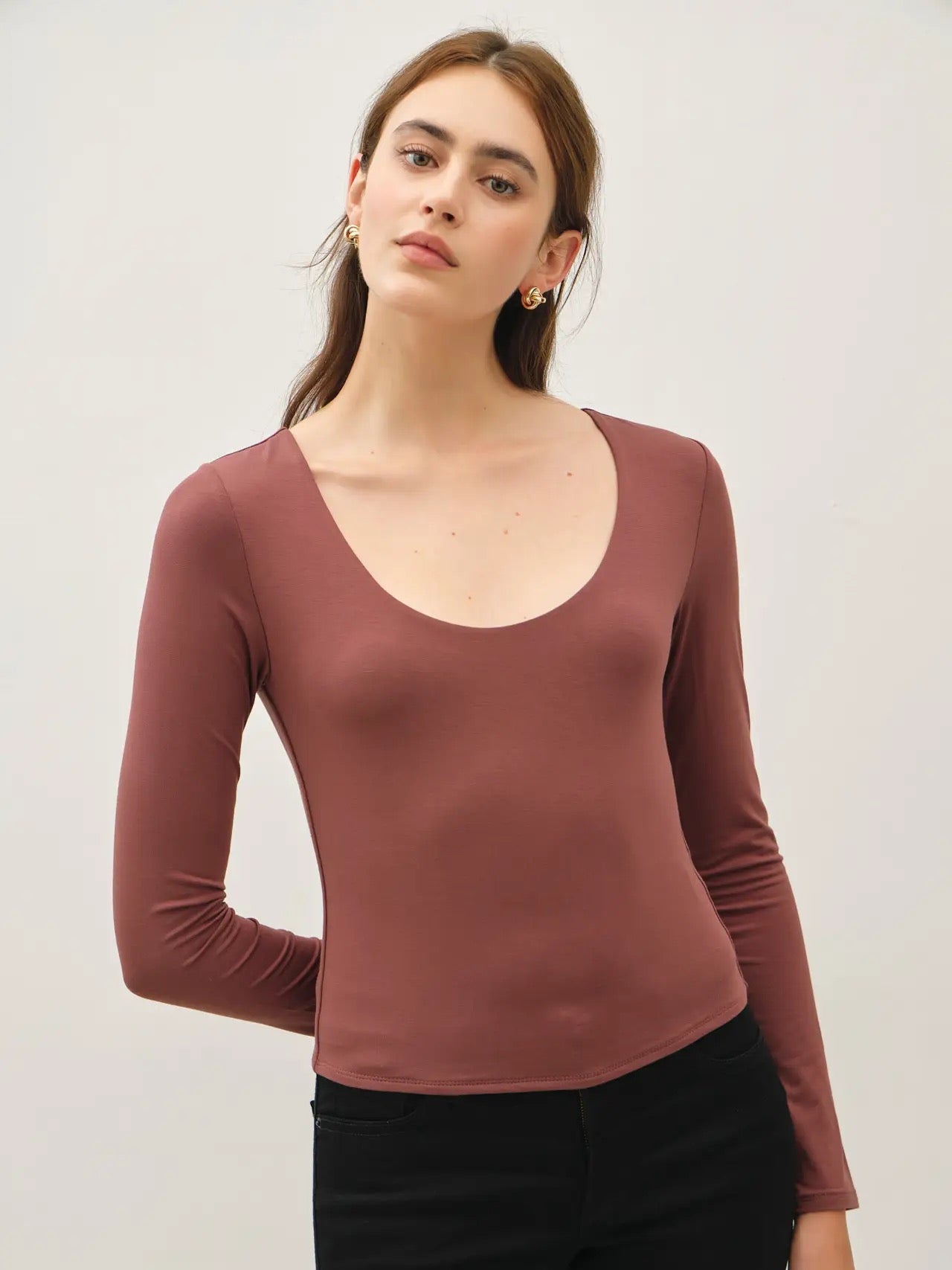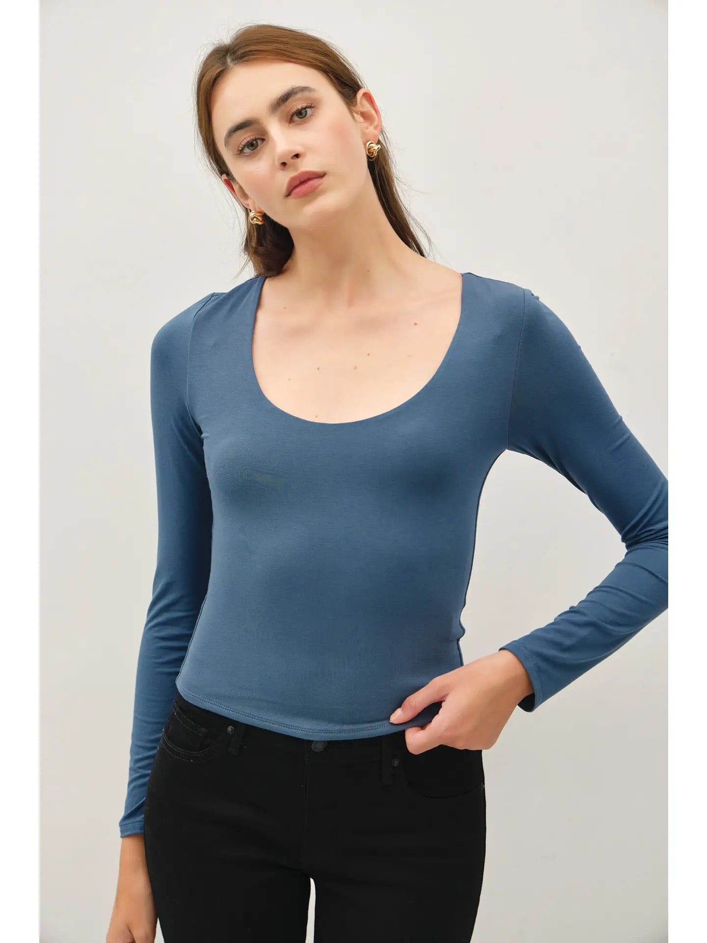 Long Sleeve Scoop Neck Basic Top