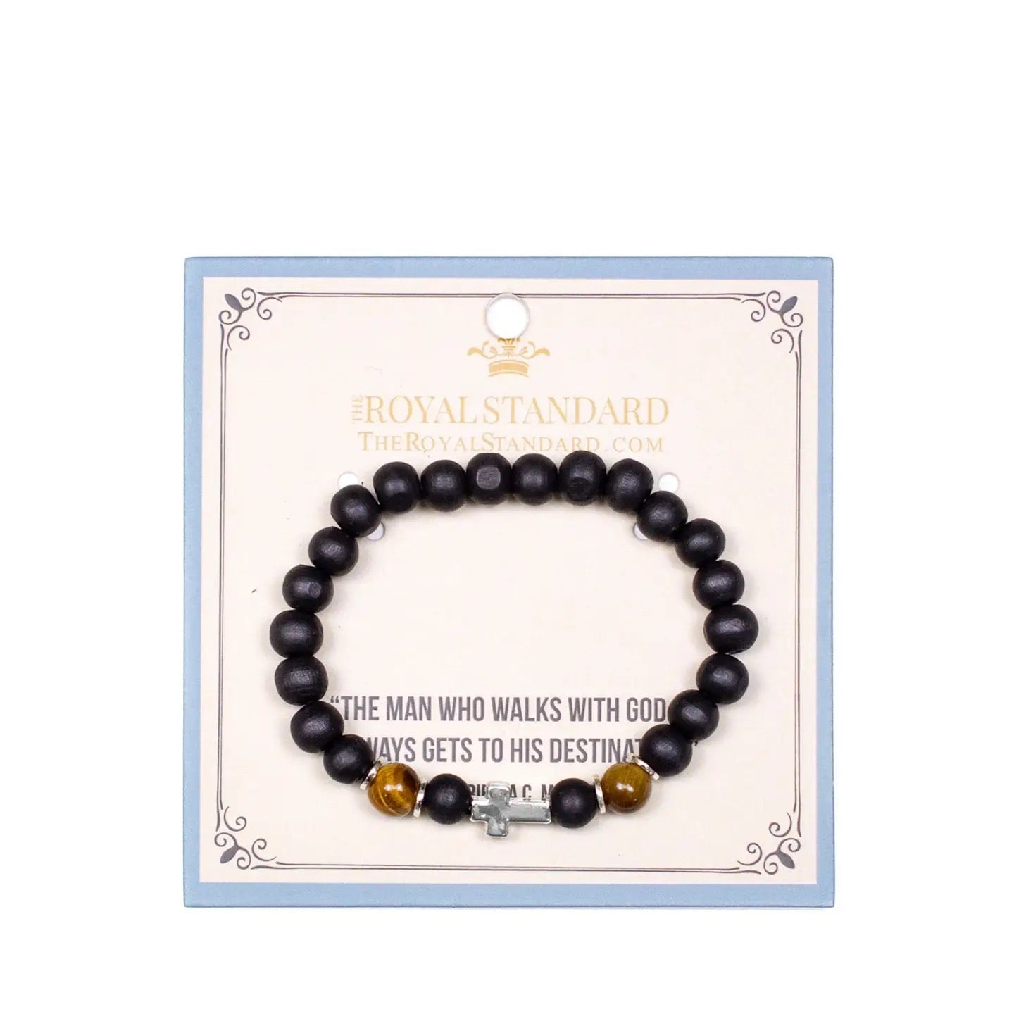 This Men's Walk With God Beaded Bracelet combines black and brown beads accented with silver details, offering a refined and meaningful accessory. Measuring 7.5 inches, its design provides a comfortable fit while subtly expressing faith and personal devotion for everyday wear.