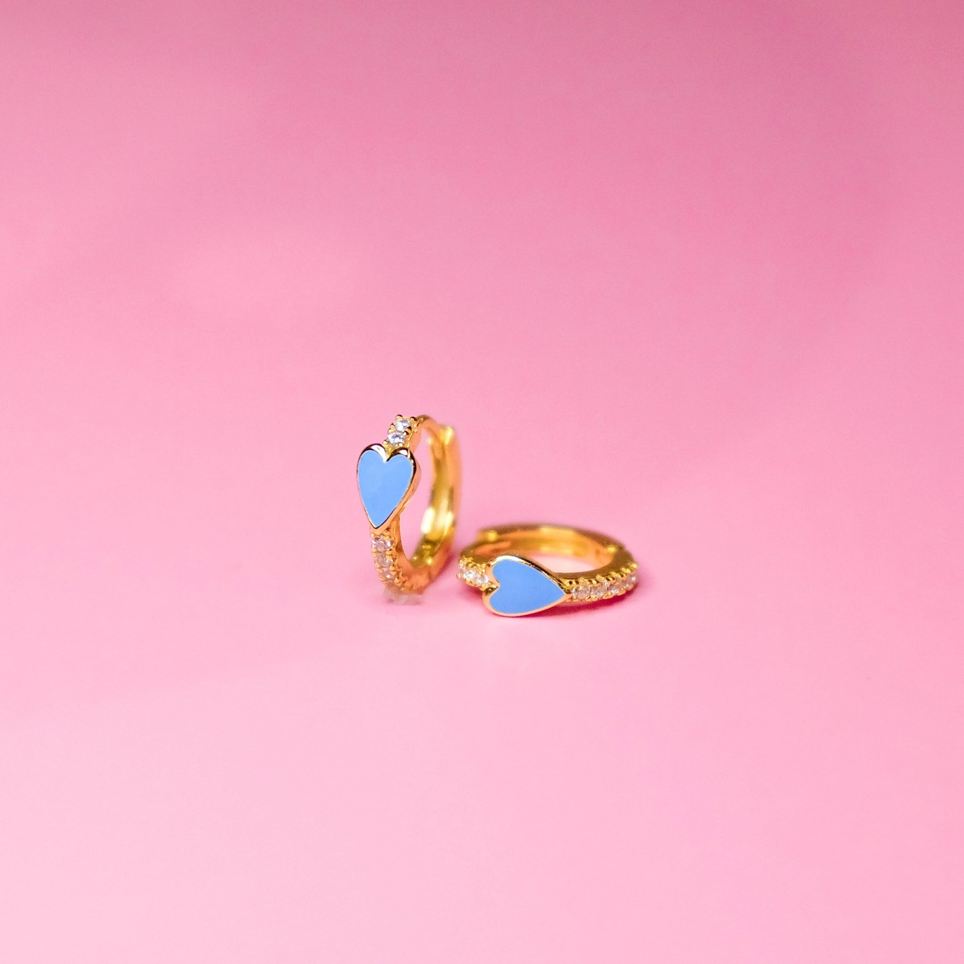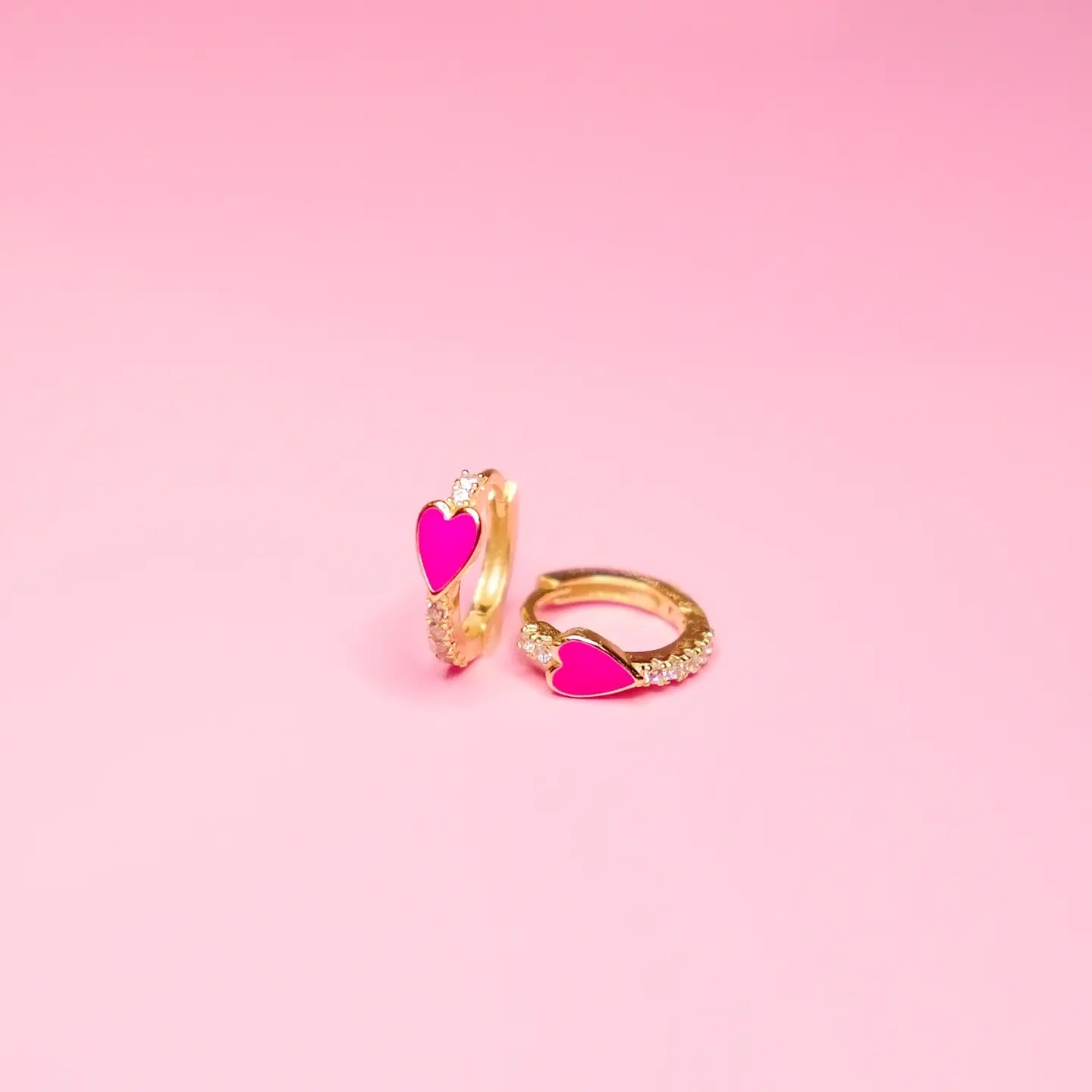 Sterling Silver, 18k Gold Plated Huggie, coquette, earring, hoop, heart, gold, pink