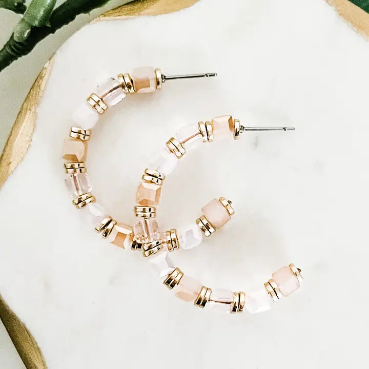 Pink Beaded Hoop Earrings