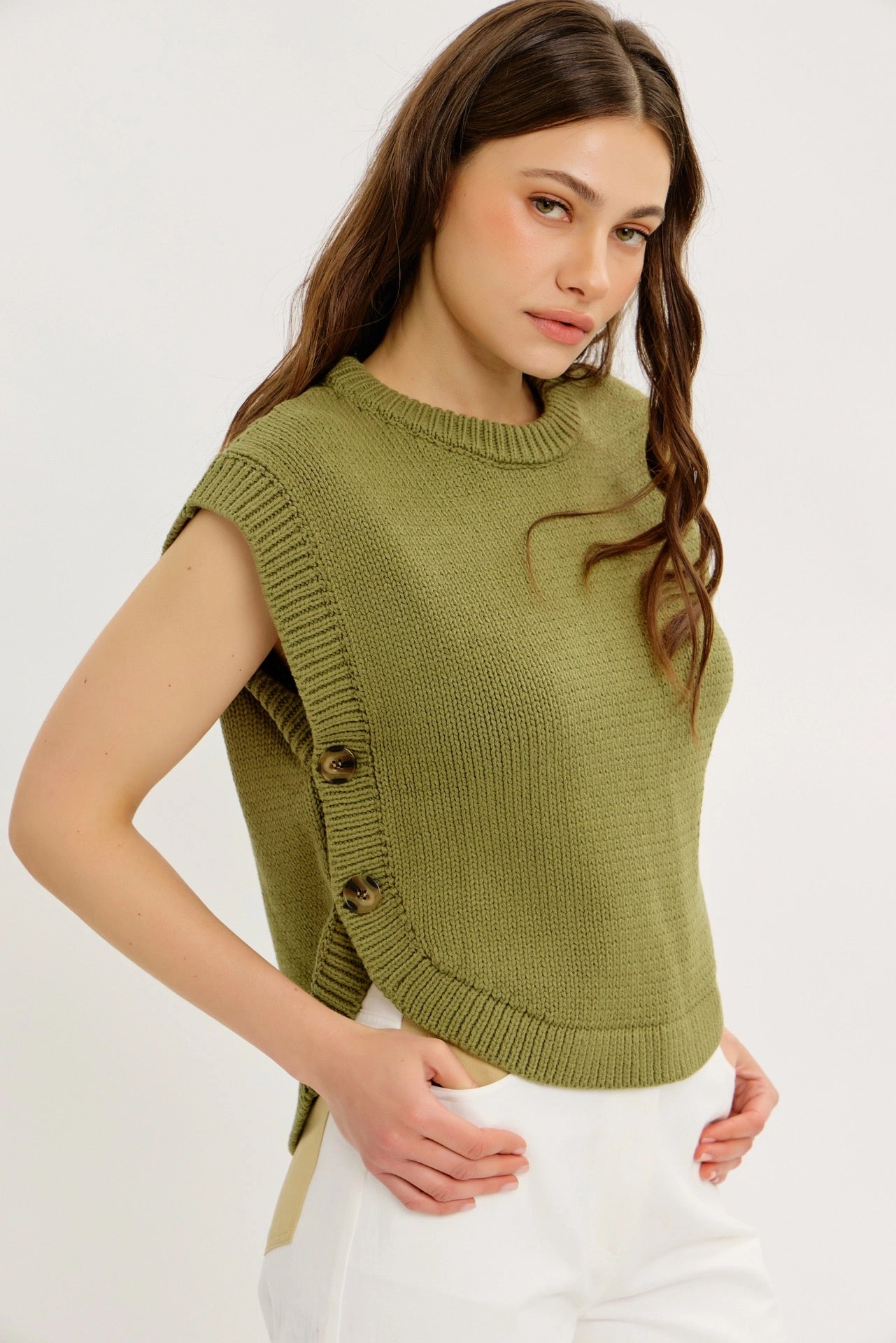 This Round Neck Hi-Lo sweater features a comfortable blend of 60% cotton and 40% acrylic, offering both breathability and durability. Its hi-lo hem design adds a modern silhouette, while side buttons provide subtle detailing and ease of wear. Ideal for layering, this piece combines style with practical comfort for everyday use.