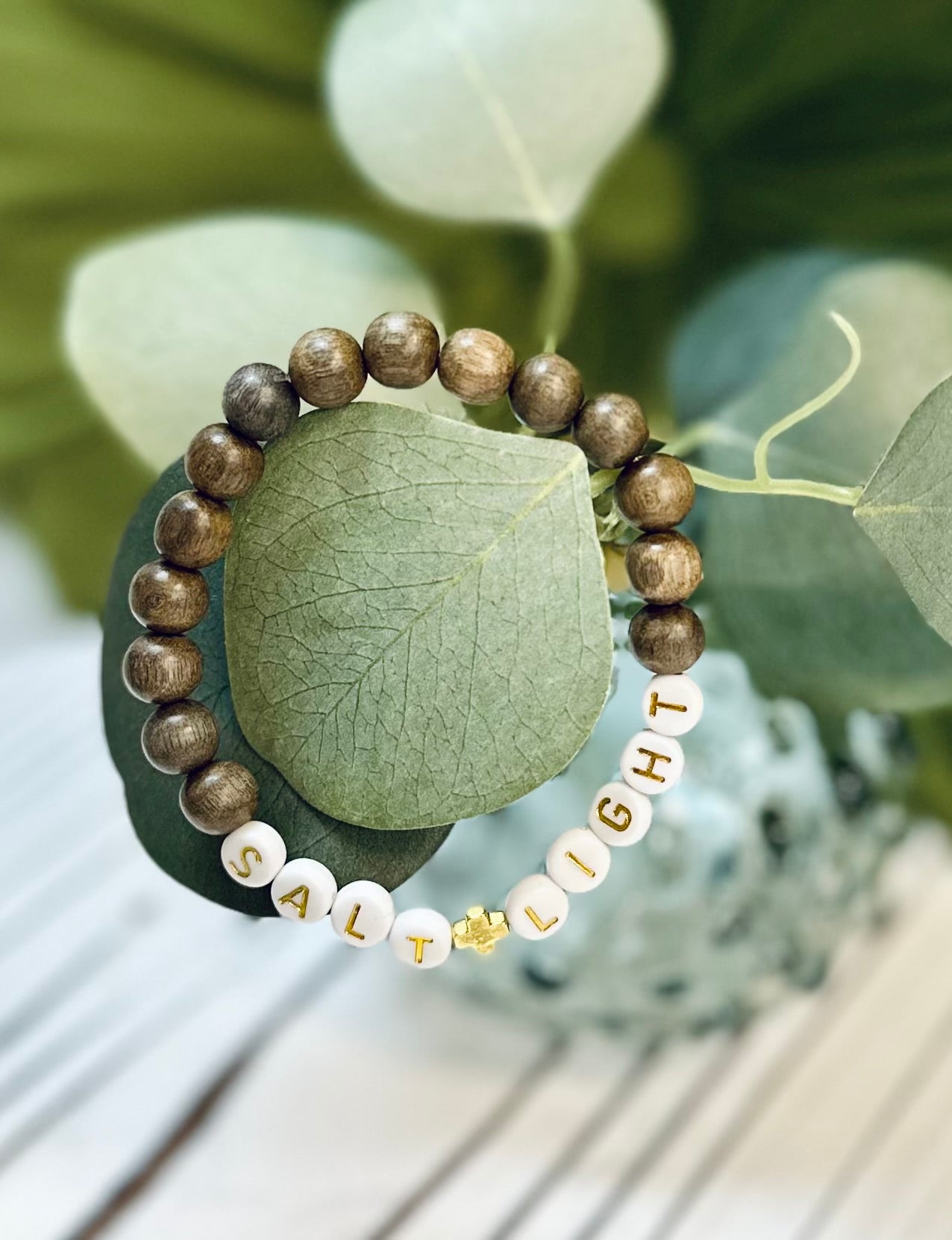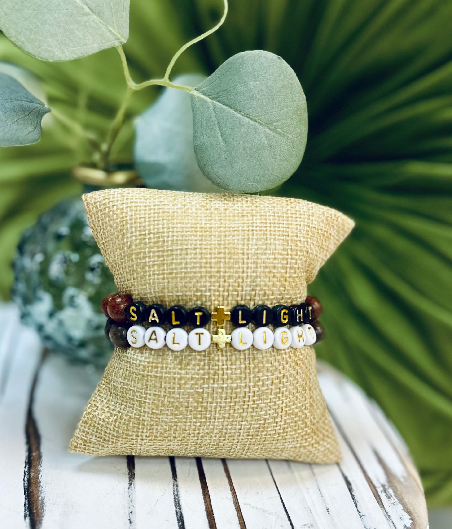 Stack or wear alone with the Salt & Light Bracelet and show off your faith in a cute way. Spread the name of Jesus with this stylish accessory!"\