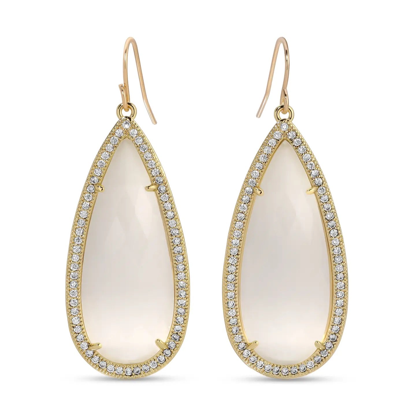 Introducing Phoebe, charming elongated stone teardrop earrings with a sparkling pave border. -2" Drop -Cat's Eye Stone -Cubic Zirconia -Plated