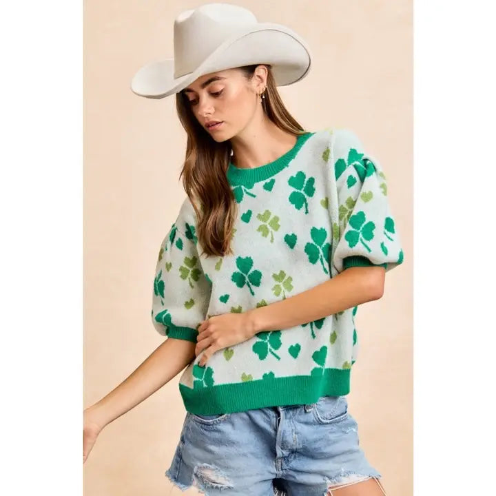 St. Patrick's Day Heart Clover Sweater Top