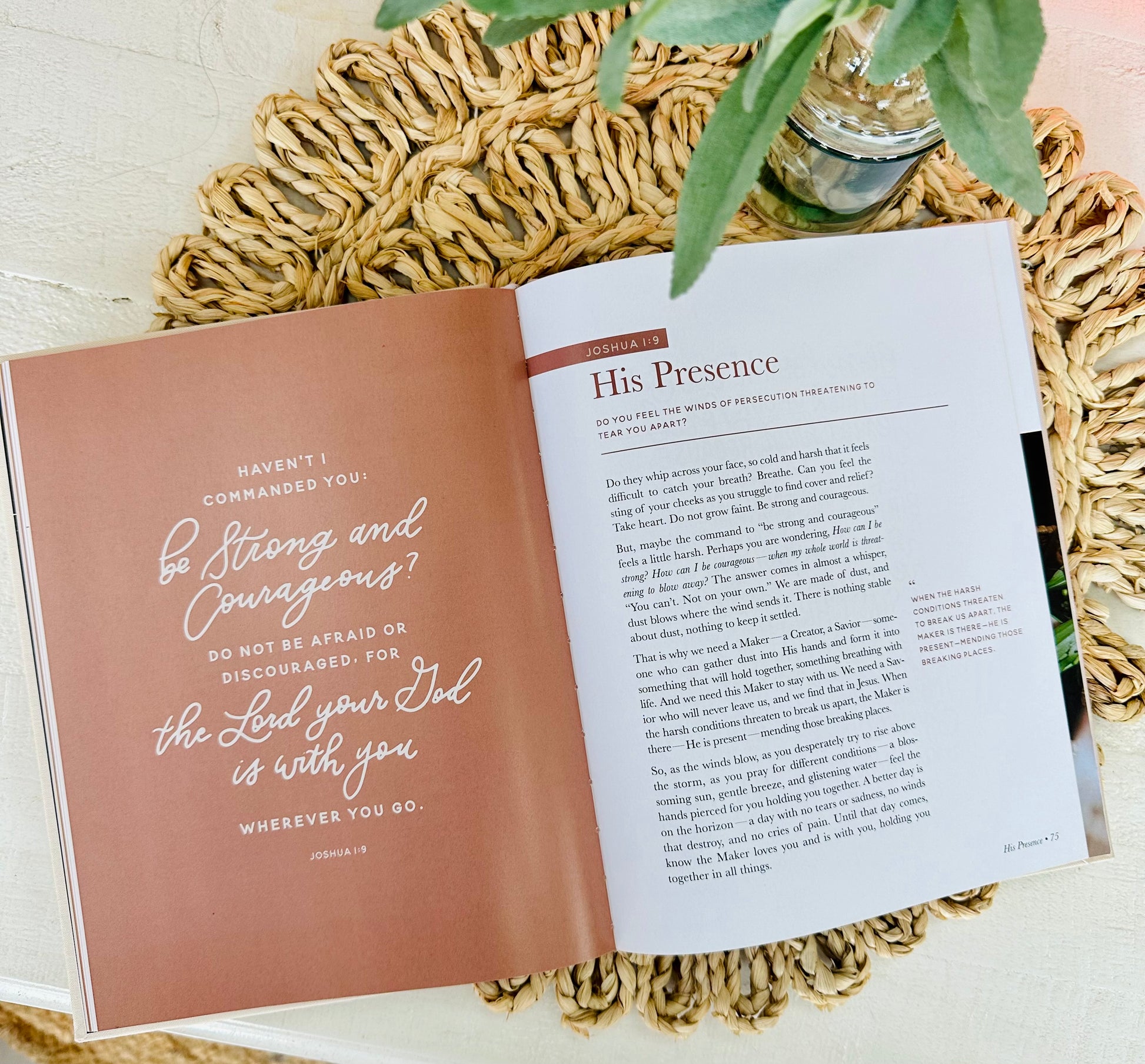 The Promises of God is a 192-page coffee table book filled with beautiful devotions, poetry, hand-lettered scripture, and reflections on the unchanging nature of God.